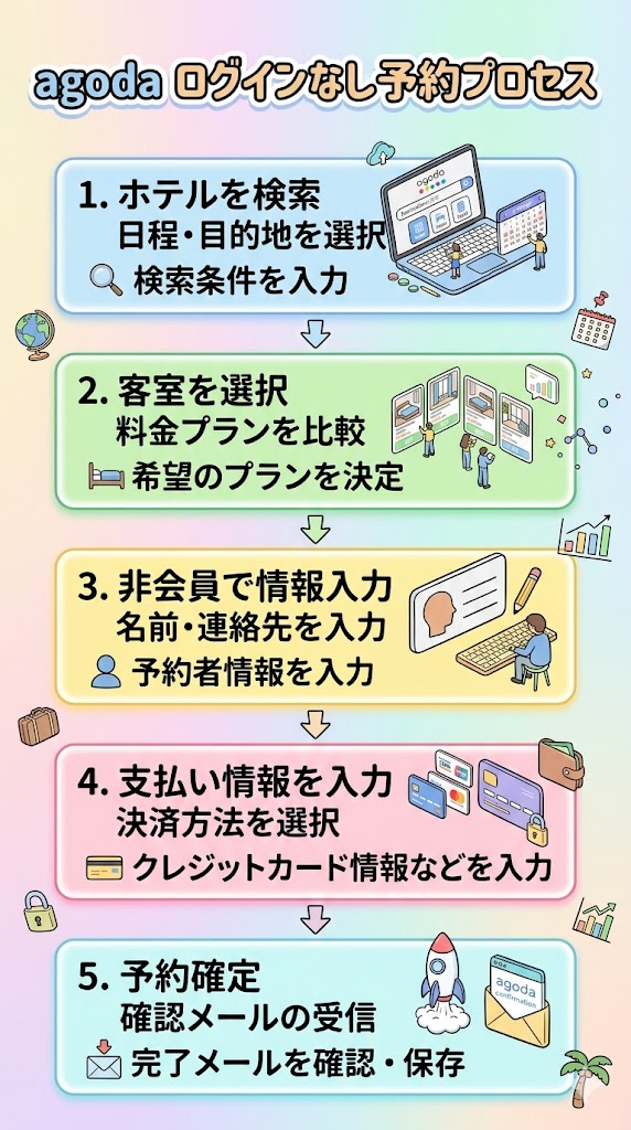 【結論】agodaは会員登録・ログインなしでも予約可能です!