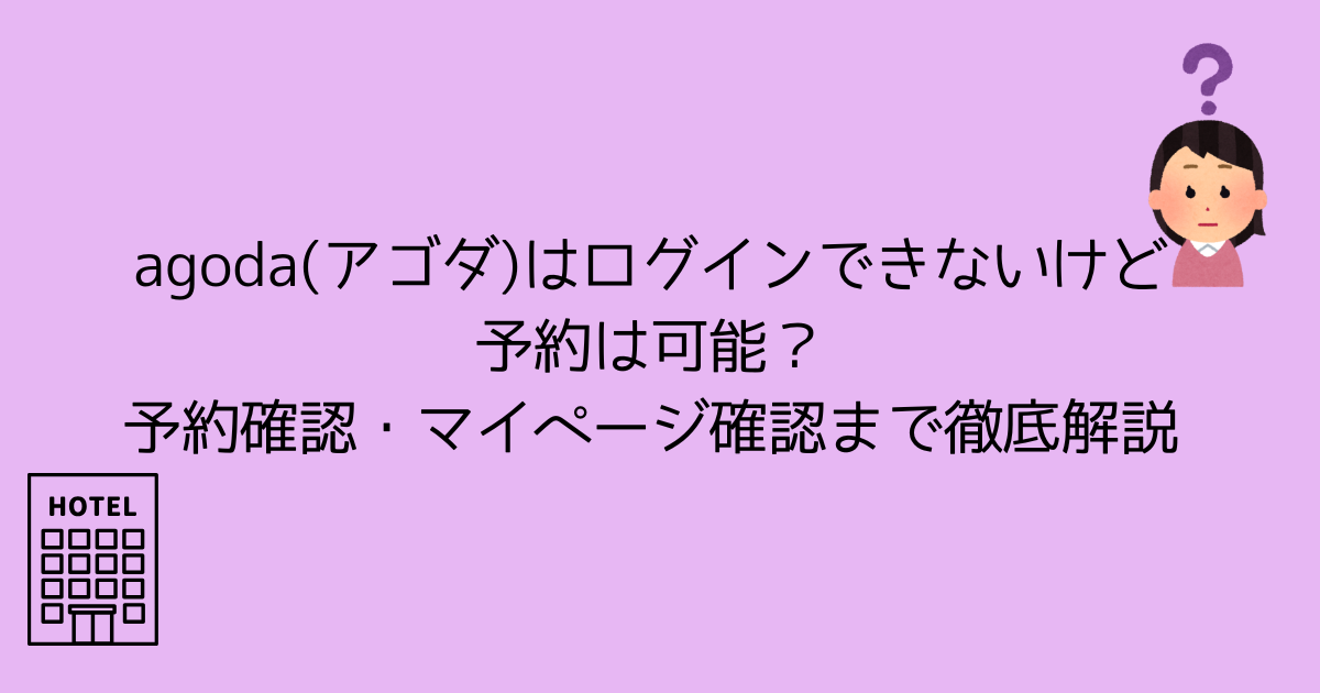 この記事では、アゴダ ログインできないときの原因と予約方法から、agodaログイン、予約確認、マイページ確認まで分かりやすく解説します。