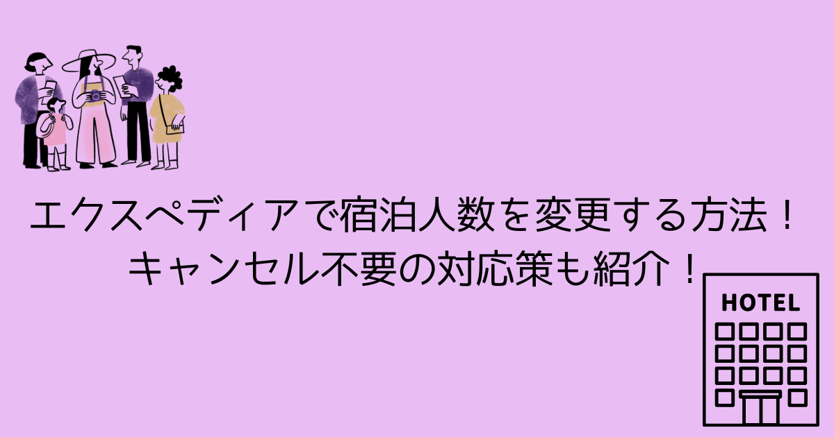 この記事では、Expedia(エクスペディア)で宿泊予約後に人数を変更したい場合の対処法について詳しくご案内します。