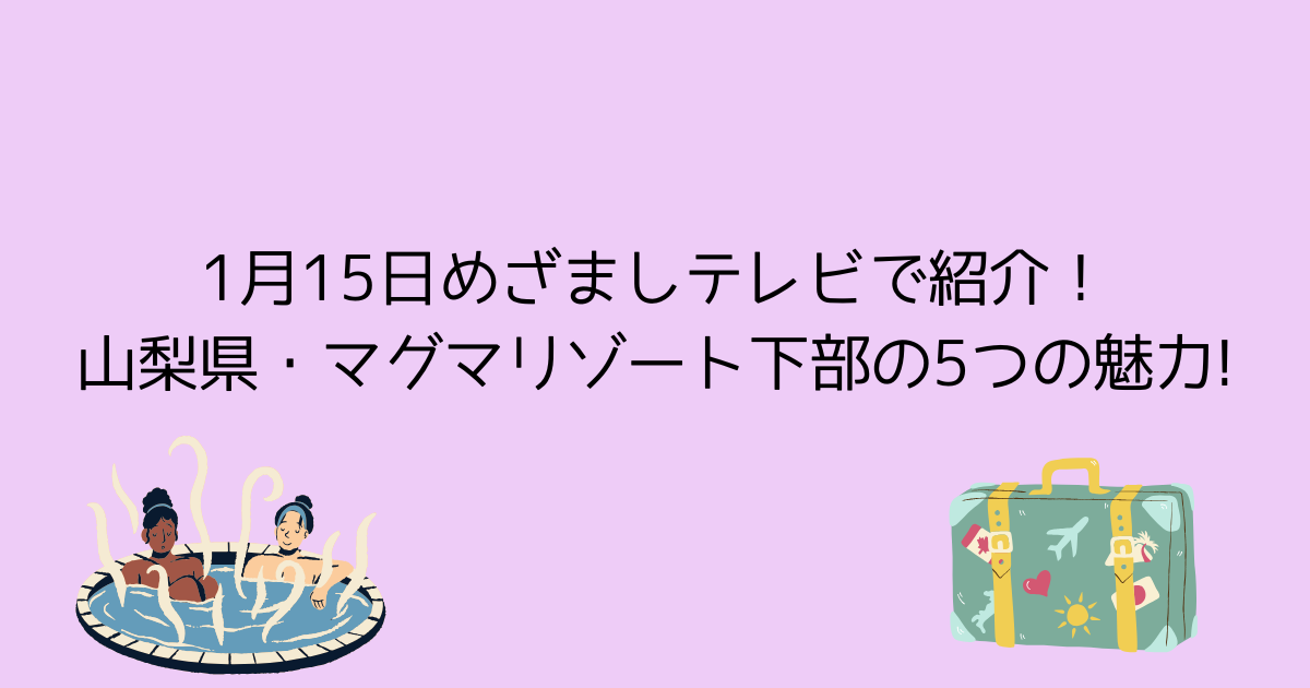 1月15日めざましテレビで紹介!山梨県・マグマリゾート下部の5つの魅力をご案内!