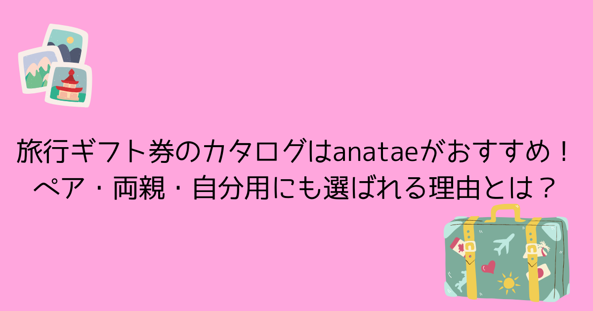 「旅行ギフト おすすめ」「旅行ギフト カタログ」「旅行ギフト ペア」「旅行ギフト 両親」「旅行ギフト券 おすすめ」で探している方は、ぜひanataeを検討してみてください。