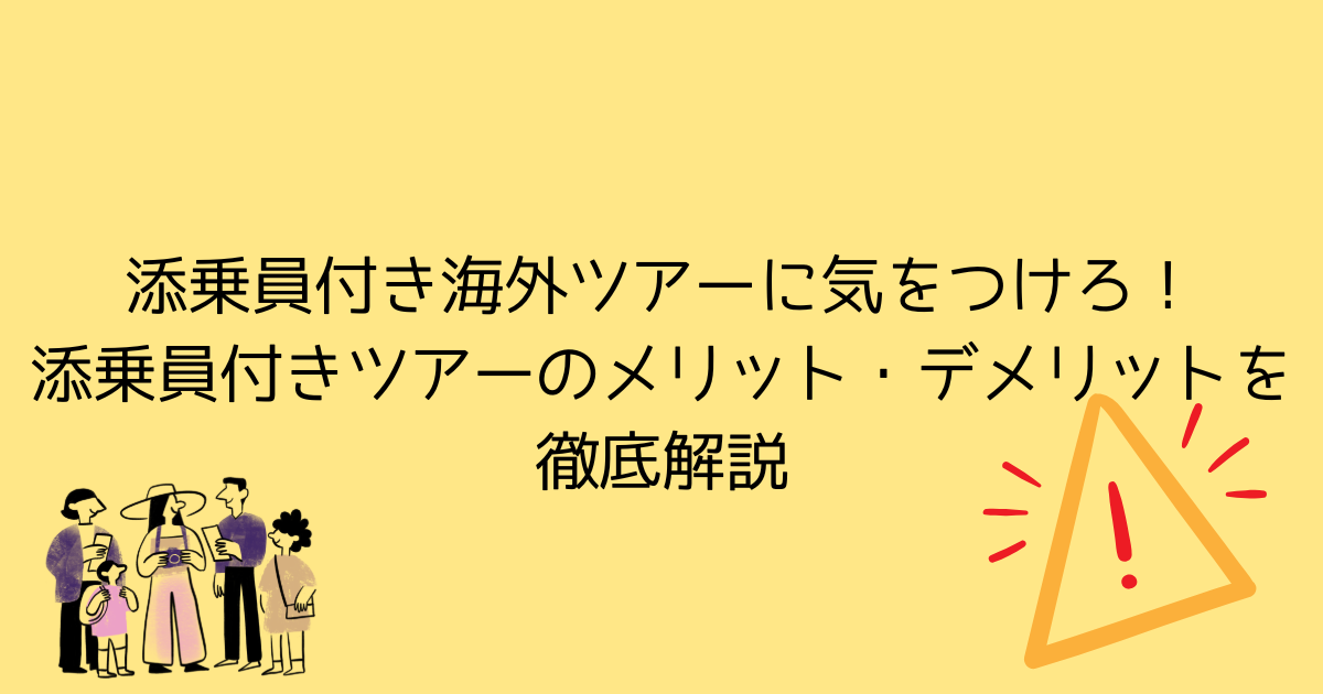 海外旅行を計画していると、「添乗員付きツアー」が目に留まることが多いですよね。手配が楽で、初めての人にも安心だと言われる一方、「添乗員付き海外ツアーに気をつけろ」という声も少なくありません。